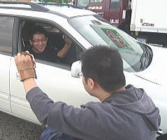 | 越後川口SA、 川下君と合流。朝ごはんを食べて腹ごしらえ。