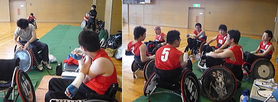 一試合終了で一気にやつれたキヨと、これから試合を向かえる義塾の面々。