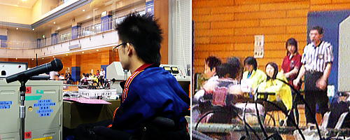 | AXEは放送担当。体育館脇のブースからアナウンスしたり音楽を流します。ゴールのすぐそばで眺めが良いのですが、本来の職務の邪魔になるので必要時以外は出入り禁止になってしまいました。残念。