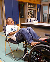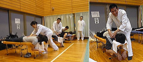 | サブアリーナでは整体(?)の先生がマッサージをしてくれました。福井さんは寝てしまったようです。 |