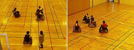 その反対側ではうらやましそうに隣のコートを見つめる二人。そんなにイヤラシイ目で見てると嫌われるぜ。 |