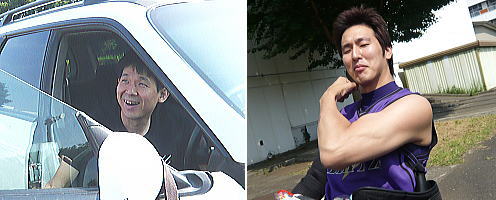 車から降りたくなぁ〜い。と、ダダを捏ねる川下君とヤル気マンマンの坂井君。