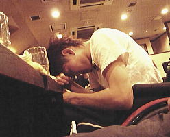 おなじみのお好み焼屋「BanBan」で打ち上げ。乾杯は昨日も(!)ココに来てた羽賀君。 |