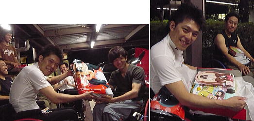 7/31にみねしーの所に長女・愛佳ちゃんが誕生。 遅くなったけどチームから出産祝い。ディズニーキャラでそろえてみました。