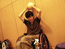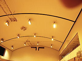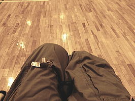 体育館の天井と指(右上)