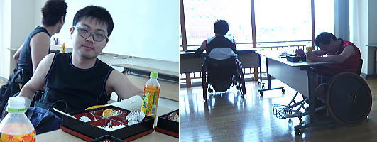 お腹いっぱいになったら眠くなる。てか、半田さんは寝てる。半田さんは昼食中も車椅子を乗り換えない派らしい。乗り換え面倒だもんね。 |