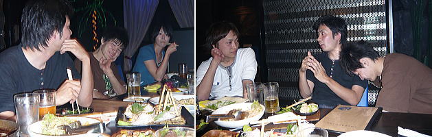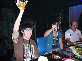 手前に写るしゅうじ君は酔ってかなり良い塩梅。ビールとジャガイモが好きと言ってた。