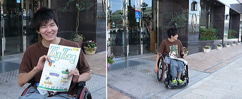 道内情報誌「ZigZag」片手にほほ笑む羽賀ちゃん。見送る姿が少しさびしげ。