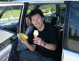 旭川空港目前にある「アイス工房田村ファーム」へ寄り道。牛乳の味をしっかりキープした濃厚なソフトクリーム。ん〜、うまい。
