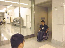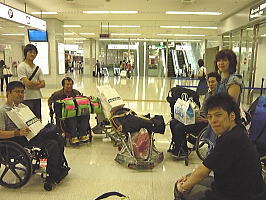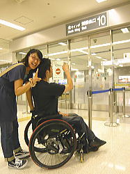 一般のお客さんが降りてきました。車いすは一番最後ですがもうすぐやってくるでしょう。ちょっとドキドキします。 |