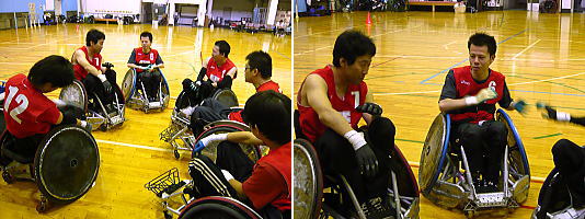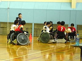 試合前のミーティング。やる気十分。 作戦はヒミツ。