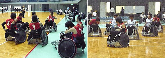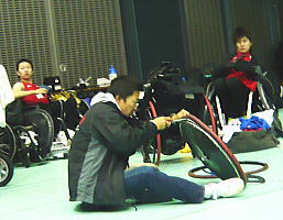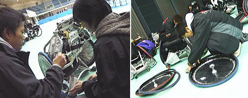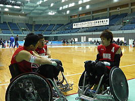 選手はまったり。スタッフはこんな時もお仕事。 |