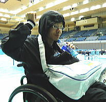 臨時にベンチに入ってくれたボランティアスタッフの学生さん。(左)ありがとう。