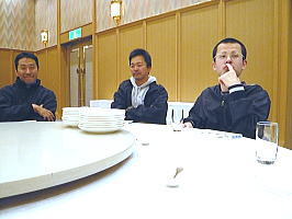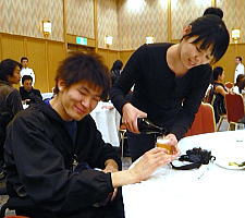 「硬いこと言うなよ〜、注いでやるから。」 あ、どうも。