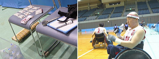 ベンチの準備完了 / 水分を取ってリラックス