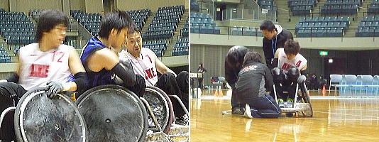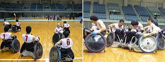 準備は万全。 チーム内でぶつかり稽古(?)