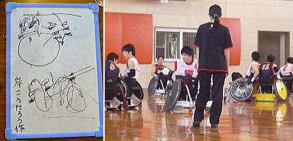 左は岸画伯によるプレーの展開についての説明。 今となっては何を書いたのか…