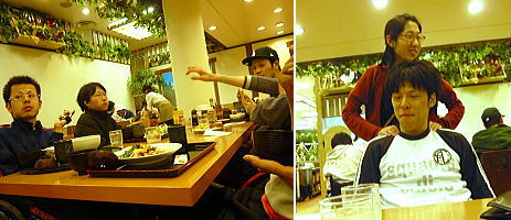 おおよその中間地点、赤城高原SAで食事。 肩をもんでもらって羨ましいぞ、みねしー。