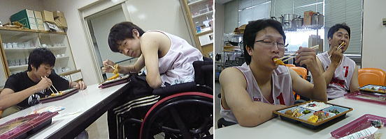 お腹減りました。 調理研修室でお弁当を食べます。 研修室だけあってガスも水も使えるのですが自炊は禁止。