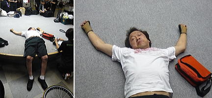 なぜか森ちゃんがパンクの修理。 見かねて川村君が手伝ってくれたけど… 今頃何やってんの?