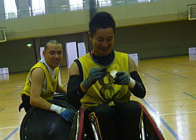 スタッフが少なかったので審判やパンク修理に大忙しだったソニックスタッフの順平君が、一緒にラグビーをやりたいとラグ車に乗ってアピールしてます。 |