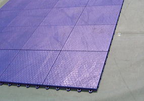 養生マット完了。いよいよスポーツコートを敷き始める。