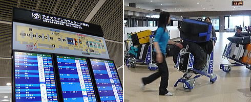 こういうの見ると空港に来た感じがする / 集合地点に荷物を搬送。結構な大荷物。