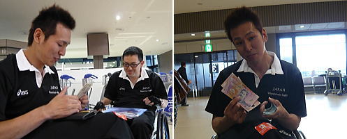 車いすにタグをつける。 / 手荷物検査も無事通過