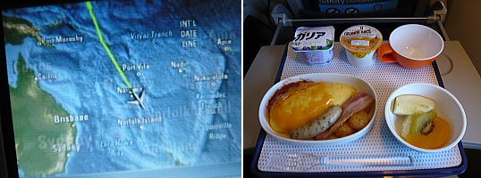 夜明けはオーストラリアに近い場所で迎えた。 / 2度目の機内食。