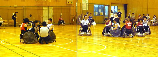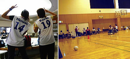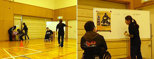 40秒計のセット / 当日の試合日程を書き込む。 審判委員会の打ち合わせ。 / 羽賀ちゃんはTO講習に参加します。 厚子さんは第一試合のTOに入ります。 / 「笹川スポーツ財団」の助成を受けました。