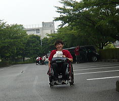 三山君に背もたれの調整をしてもらう。