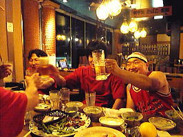 明日も大会はあるのでお酒は程々に。