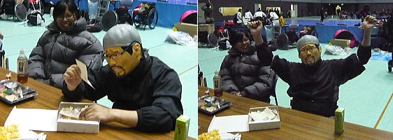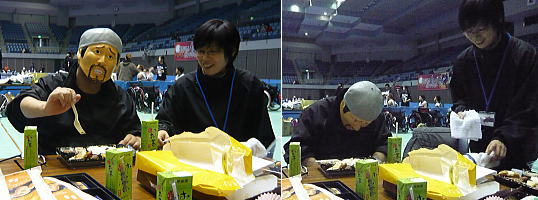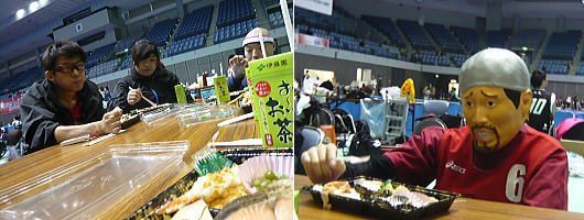 次の試合に向けて食事をします。 / 私もお弁当を頂きました。