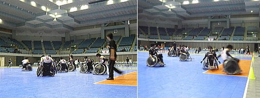 5/6位決定戦は、本日の第1試合。施設の開館と同時に入場し、試合の準備を進めます。とても、慌ただしいです。 |