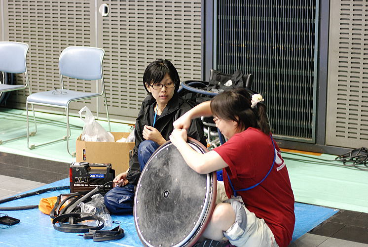 パンク修理も彼女たちが行います。