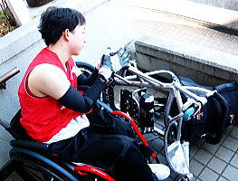 本日最後のパンクは川下君。 タイヤが無いので端っこで寂しく整理体操する。