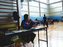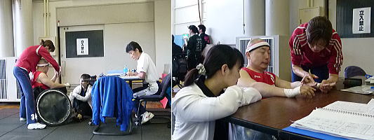 そのころ、クラスフィケーションのブースでは菊池君が再判定中。彼も今年更新の時期なのです。 |