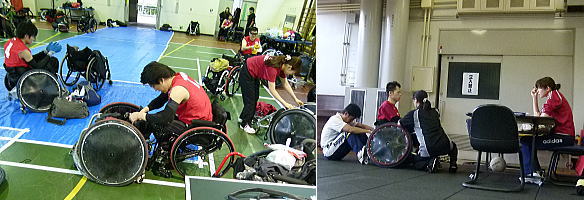 試合前の団らんでリラックス。 / 平井君に監督からアドバイス