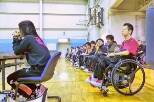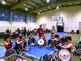 第一体育館の隣にある第二体育館が選手控室になっています。普段使わないから新鮮です。