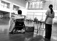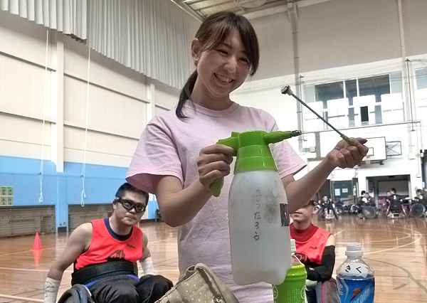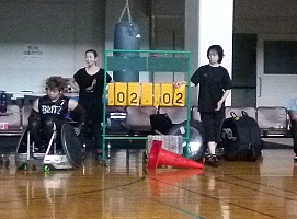 BLITZとHEATが試合をしている間はTOはAXEの仕事。みんなで協力。 本日はタイマーを借りる事が出来なかったので、点数は真心こめて一枚一枚手でめくる。