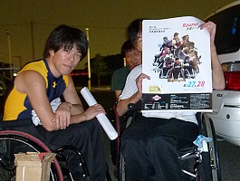 お約束の大会ポスター掲示のお願い。今回はキヨがお休みなので羽賀ちゃん単独です。無事にお願いできました。