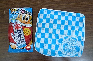 羽賀ちゃんが持ってきた「ガリガリ君氷タオル」 水分が含まれていて、本来は凍らせて使用するらしいのだが、溶けてしまってはもはやただの甘い匂いのするタオル。