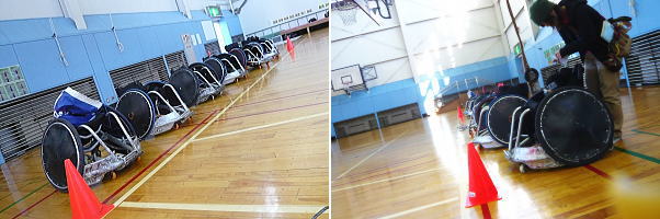 日が射して暖かいように見えますが、この体育館きれいなのに暖房設備が無い。