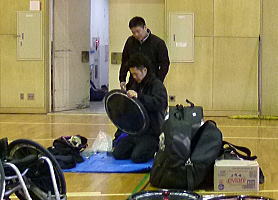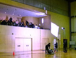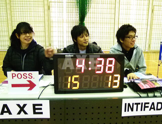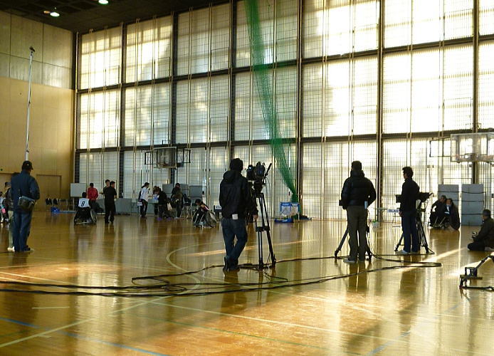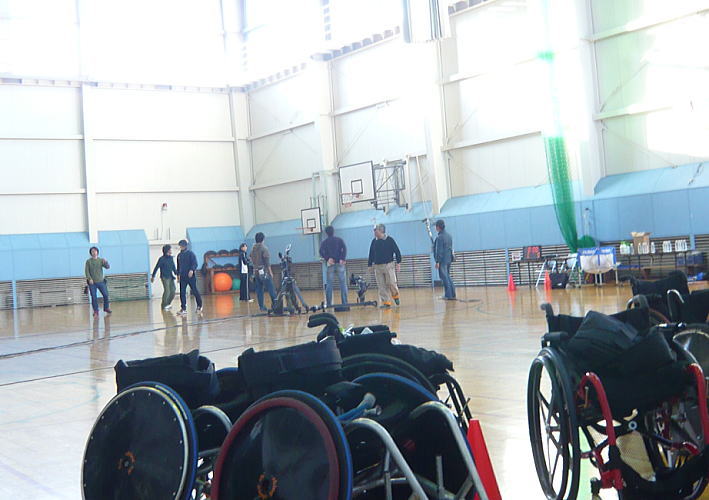 体育館内では祥平チームの「インディファーダ」vs「BLAST」の撮影。なかなか上手い具合に事が運ばないようで何度か撮影をやりなおししています。ボールを扱うから難しいよね。