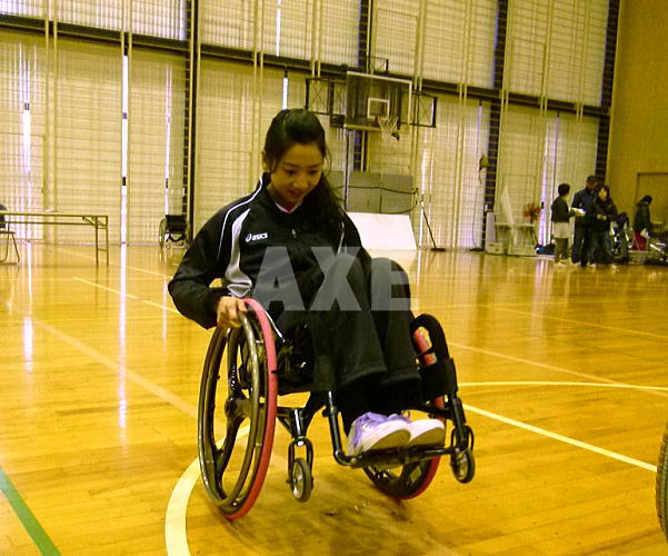 転倒から起こしてもらうシーン時にはスポークカバーの上下をきっちり意識して社名をアピール。そんなテクニックを持ってますよ。