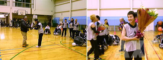 AXEの選手でエース役だった河合さんにチームTシャツを贈呈。