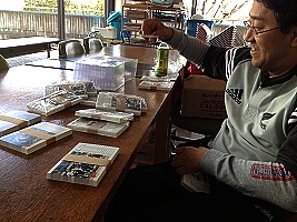 ポストカードサイズのカレンダーなのですが、印刷して届けられるのはケースとそれぞれの月の束。一つにまとめて完成形にするのはユアセルフ。 そんな訳で監督自ら最終工程というか内職作業を行います。