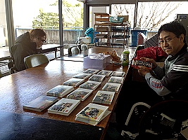 昨年に引き続き、今年もAXEカレンダーを作りました。 その最終工程の様子。