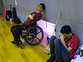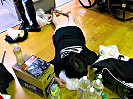 そんな事の隣では睡眠中。 暑さのためか、長時間運転の疲労なのか、気持ち悪くなっちゃった…第一試合すら始まっていないのに大丈夫か?