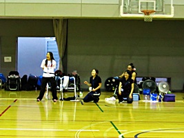 コートでは沖縄とライズの試合。 ゆりちゃんがベンチで仁王立ちになって檄を飛ばしてた。 堂々としたふるまいだが監督ではないらしい。